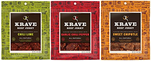 All Natural Beef Jerky Spicy Flavor Variety Pack - Garlic Chili Pepper, Chili Lime & Sweet Chipotle - 2.7 Ounces Each Bag (Pack of 3)