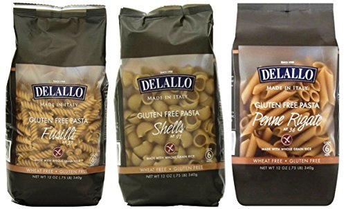DeLallo Gluten Free Pasta 3 Shape Variety Bundle, (1) each: Penne Rigate, Shells, Fusilli (12 Ounces)